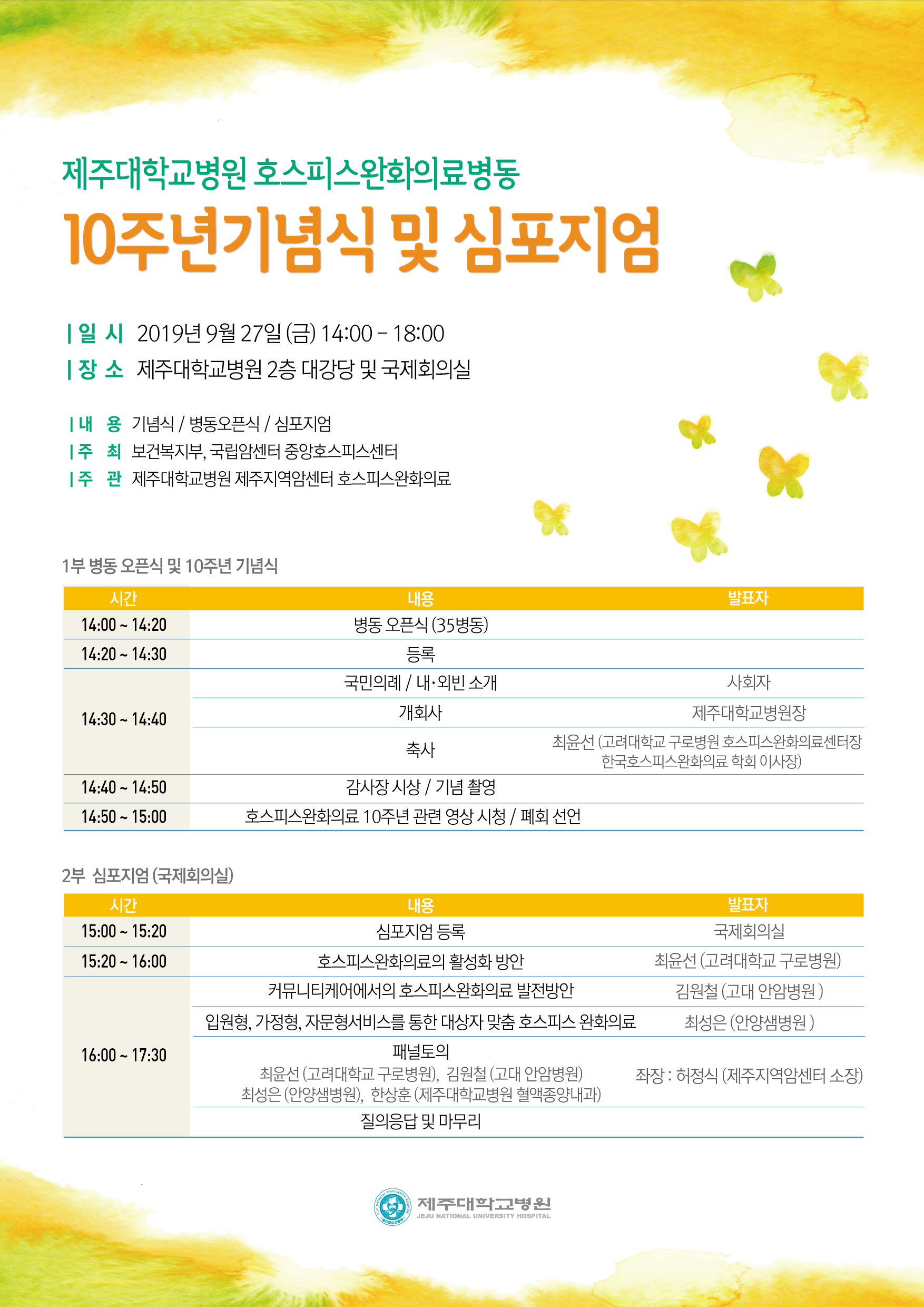 제주대학교병원 호스피스 완화의료병동 10주년 기념식 및 심포지..