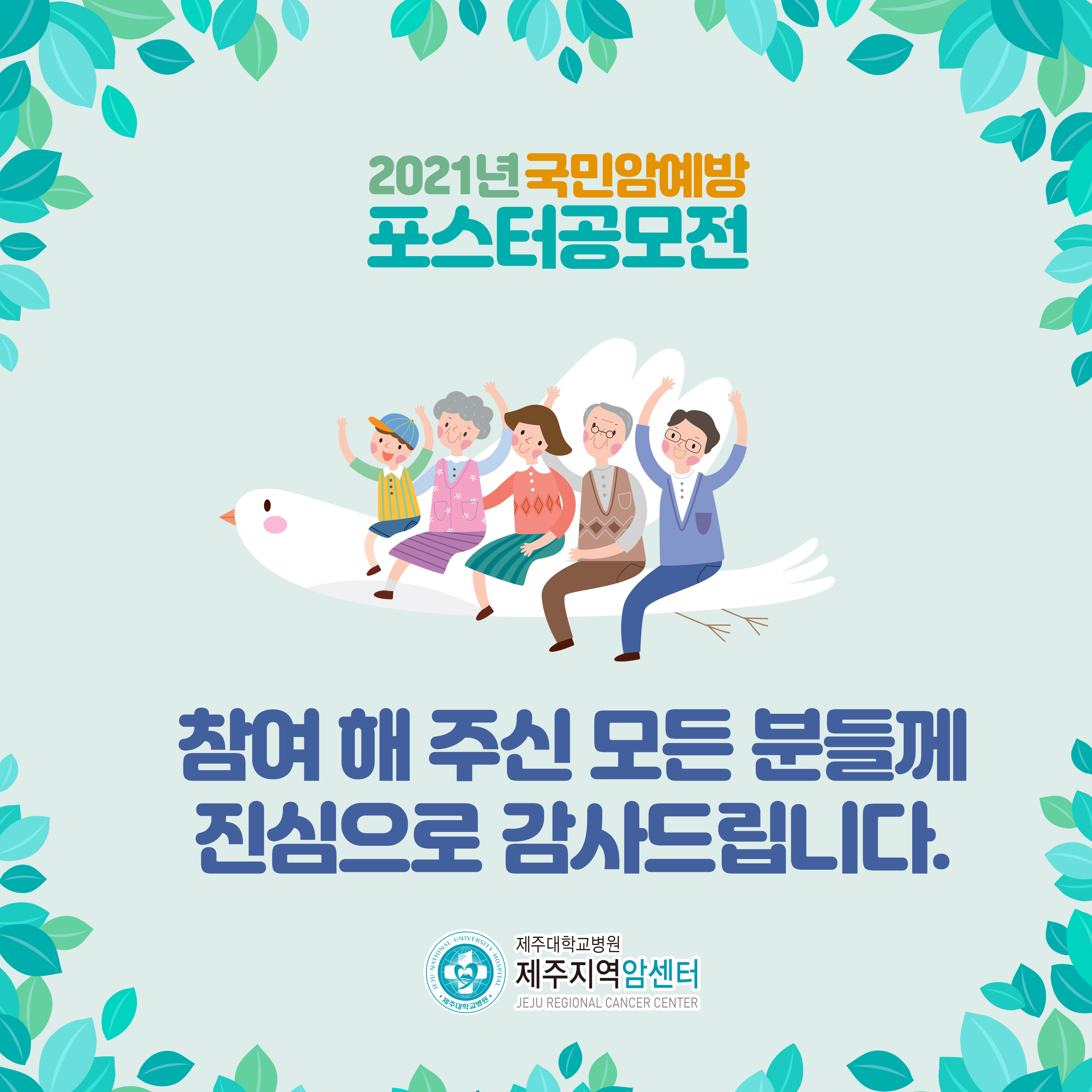 안녕하세요! 제주지역암센터입니다. 「2021년 국민암예방 포스터 공모전」결과를 발표합니다!!