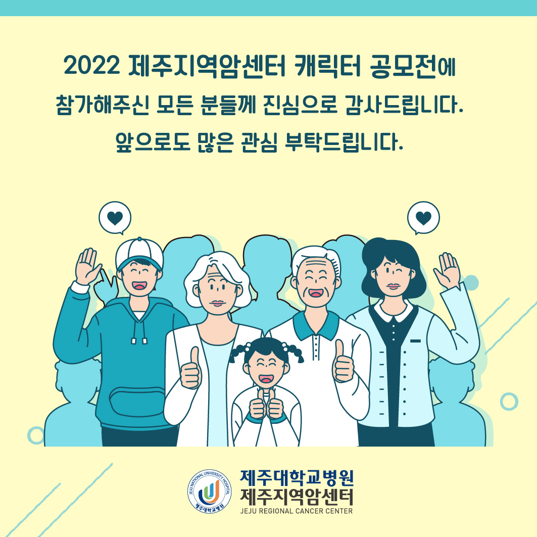 안녕하세요. 제주지역암센터입니다. 「2022 제주지역암센터 캐릭터 공모전」결과를 발표합니다.