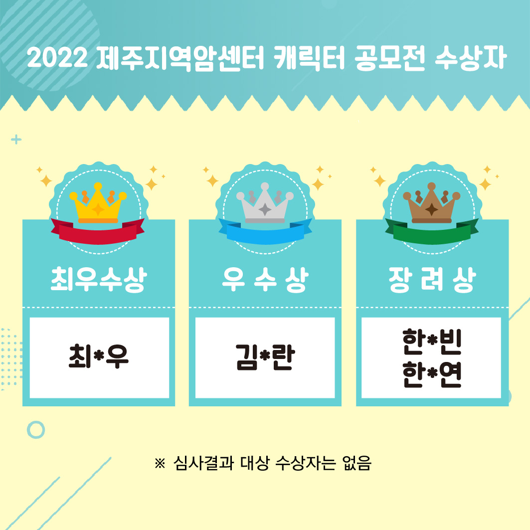 2022 제주지역암센터 캐릭터 공모전 수상자 발표 | |||